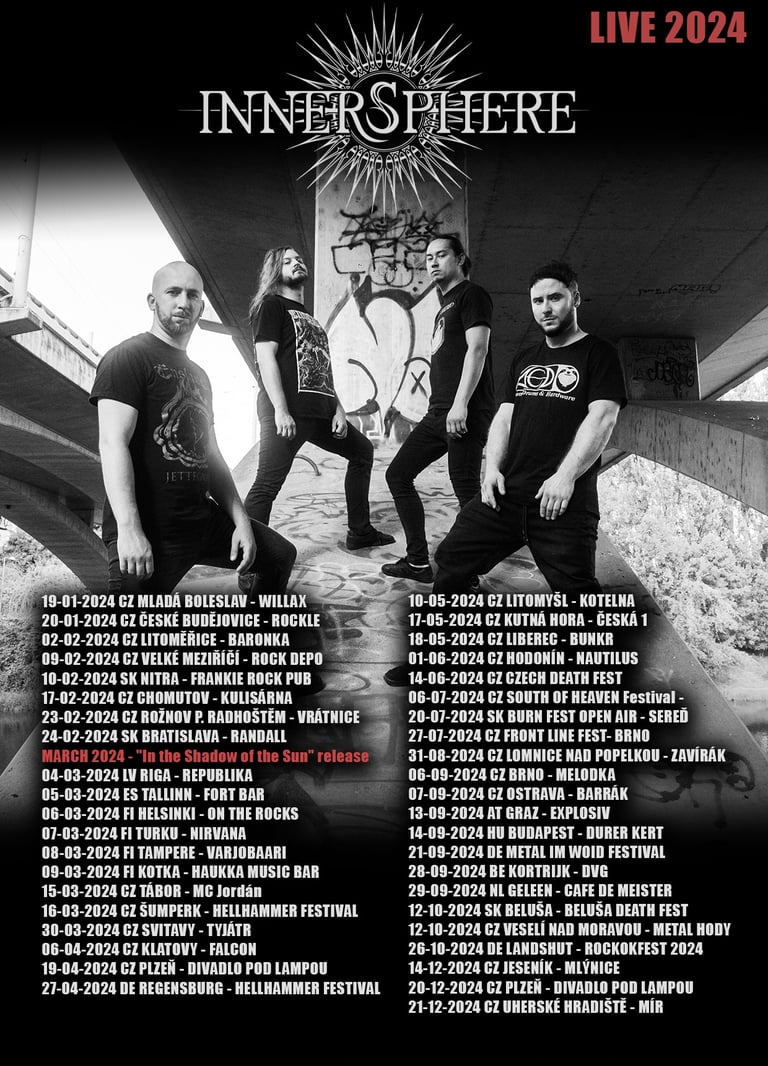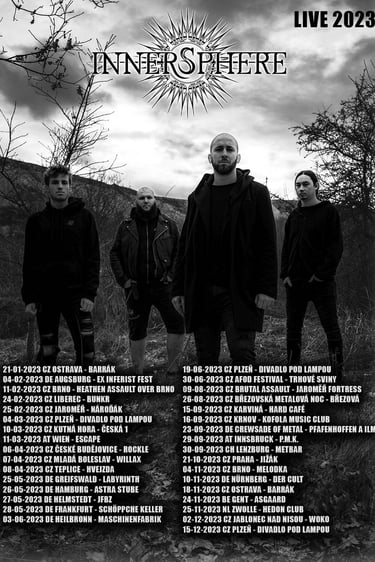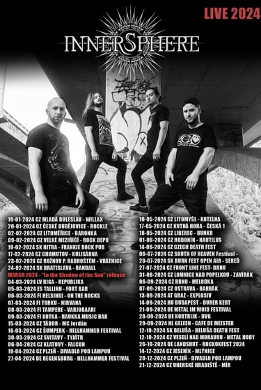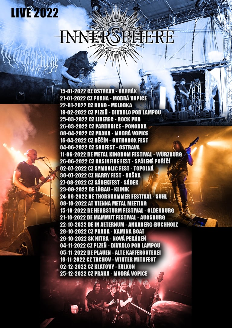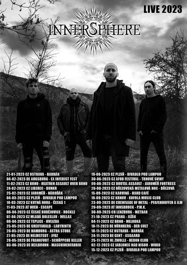 We also underwent a linup change in April - we parted our ways with bassguitarist Marek Hubocky and drumer Filip Wintr in a friendly way. Both guys spent couple of years in Innersphere and were fine bandmates, friends. But the life goes on, the priorities change and this decision was the best for all of us. We introduced Jaroslav Kouřim on bass (J.K. was already a part of our team for last two years) and Zdeněk "Doctorr" Ševčík on drums. (you may know Doctorr from Symbtomy or Praselizer, his other bands).